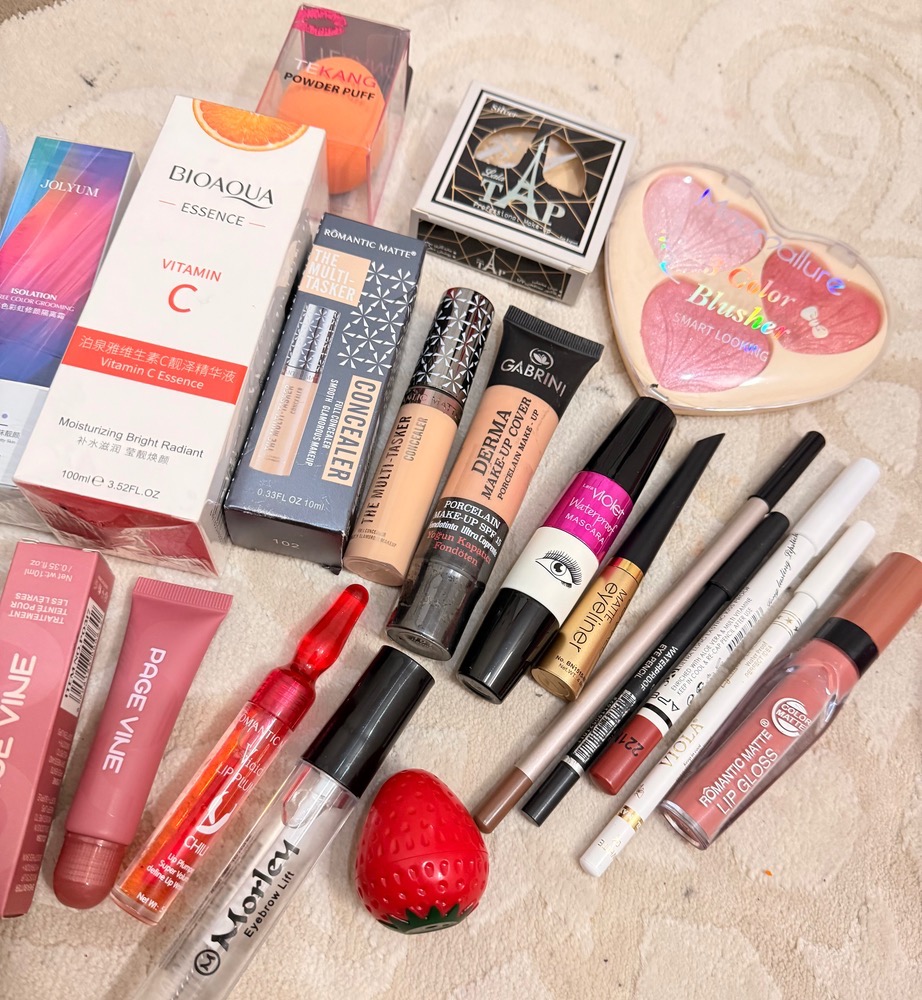 پک کامل لوازم آرایشی و پوستی شامل: خطچشم،ریمل،رژلب،خطلب،لیپگلاس،کرمپودر،کانسیلر،ضداقتاب،سرم،حجم دهنده لب،ژل ابرو،بالم لب،مداد چشم سفید،مداد چشم مشکی،مداد ابرو،پرایمر،بیوتی بلندر،رژگونه،پنکک