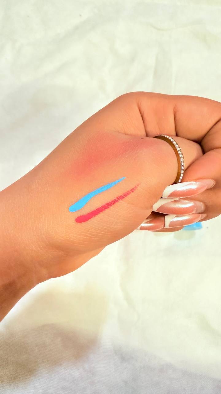 خط چشم رنگی در دو رنگبندی صورتی و ابی و حجم زیاد و قیمت اقتصادی موادش غلیظه و خشک نیست و بسیار بکیفیته🍓