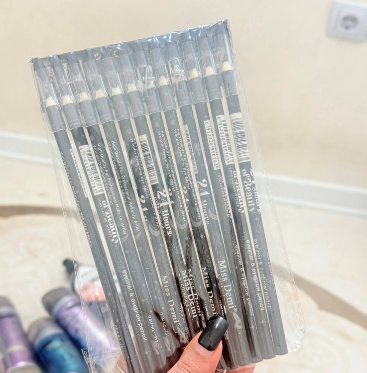 مداد مشکی داخل چشم میس دمی بسیار باکیفیته و پیگمنت بالایی داره و اقتصادیه روونه و بسیار مشکیه و تراش داره🩷