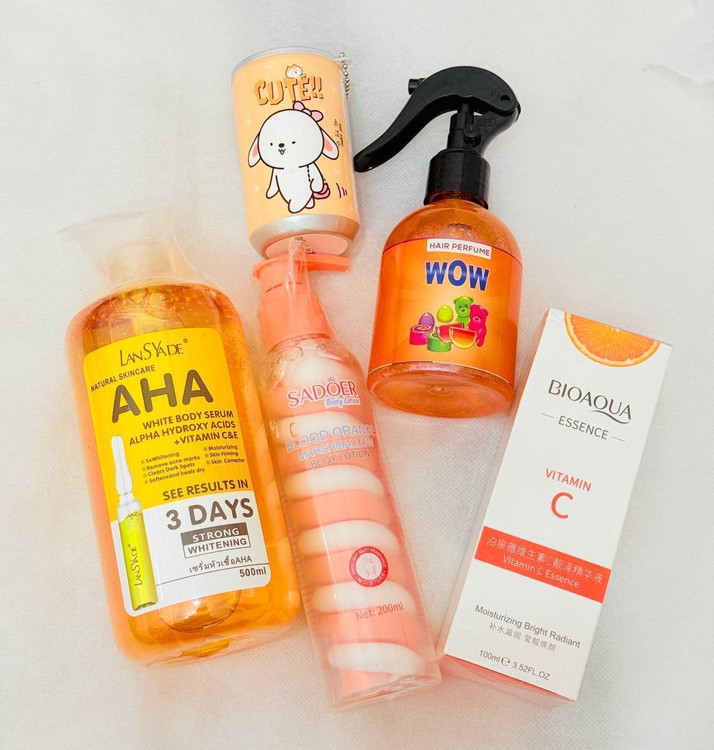 یک بمب سفیدی ااچا دستمال مرطوب لوسیون عطر مو و سرم ویتامین سی
